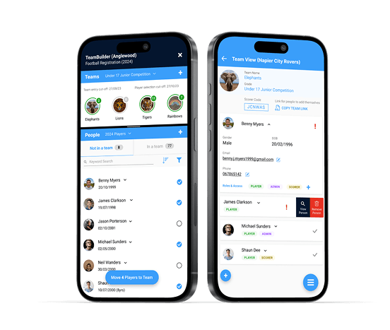 Live scoring Mobile App that replaces paper score cards for submitting team lists and scoring on game day while also improving communication by displaying live scores on team websites.